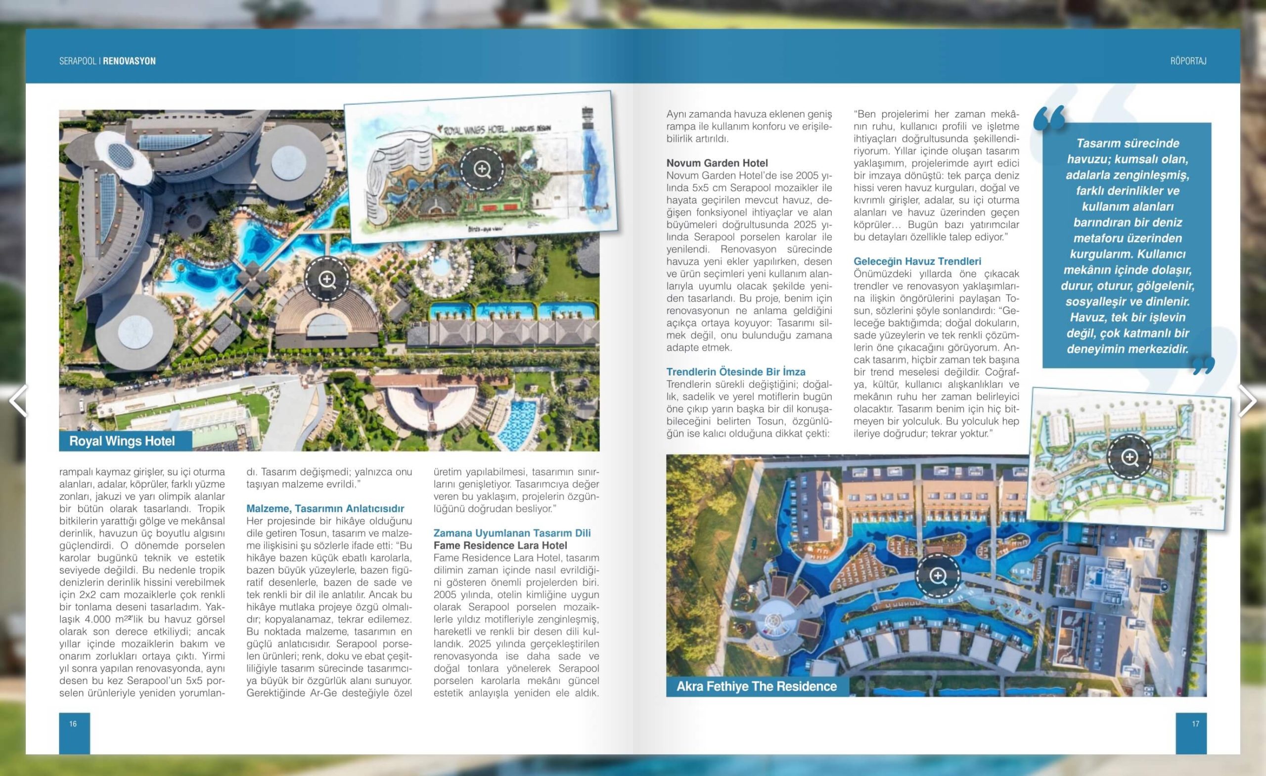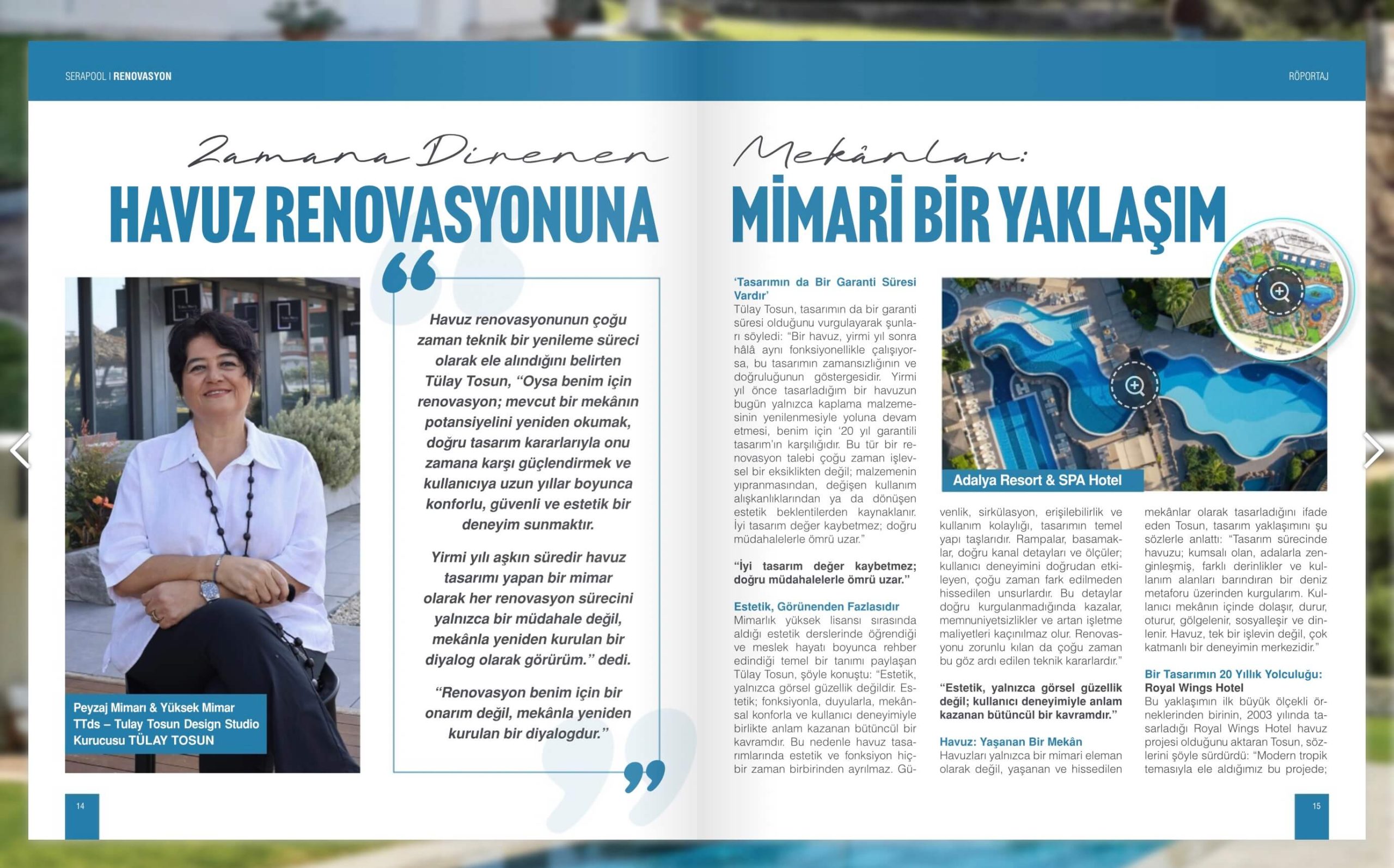 TTds is proud to be featured in Renovasyon, the latest publication by Serapool Porselen, with a selection of projects and an interview with studio founder Tülay Tosun. Highlighting Serapool products used in recently renovated pools, the issue brings together exemplary projects including several designed by TTds.