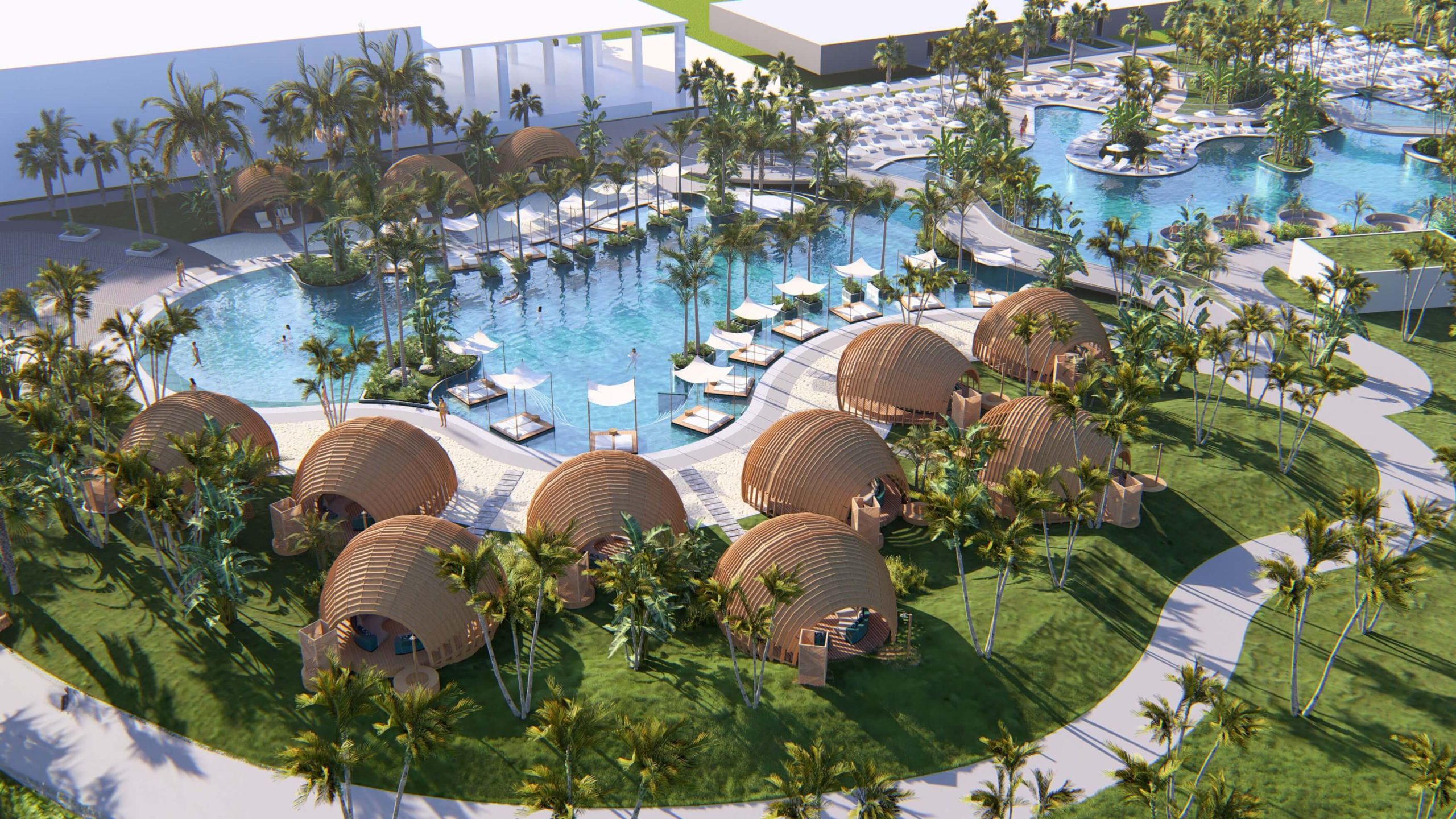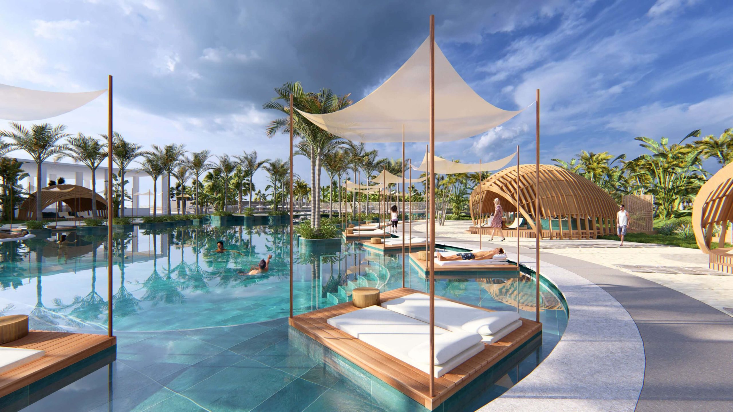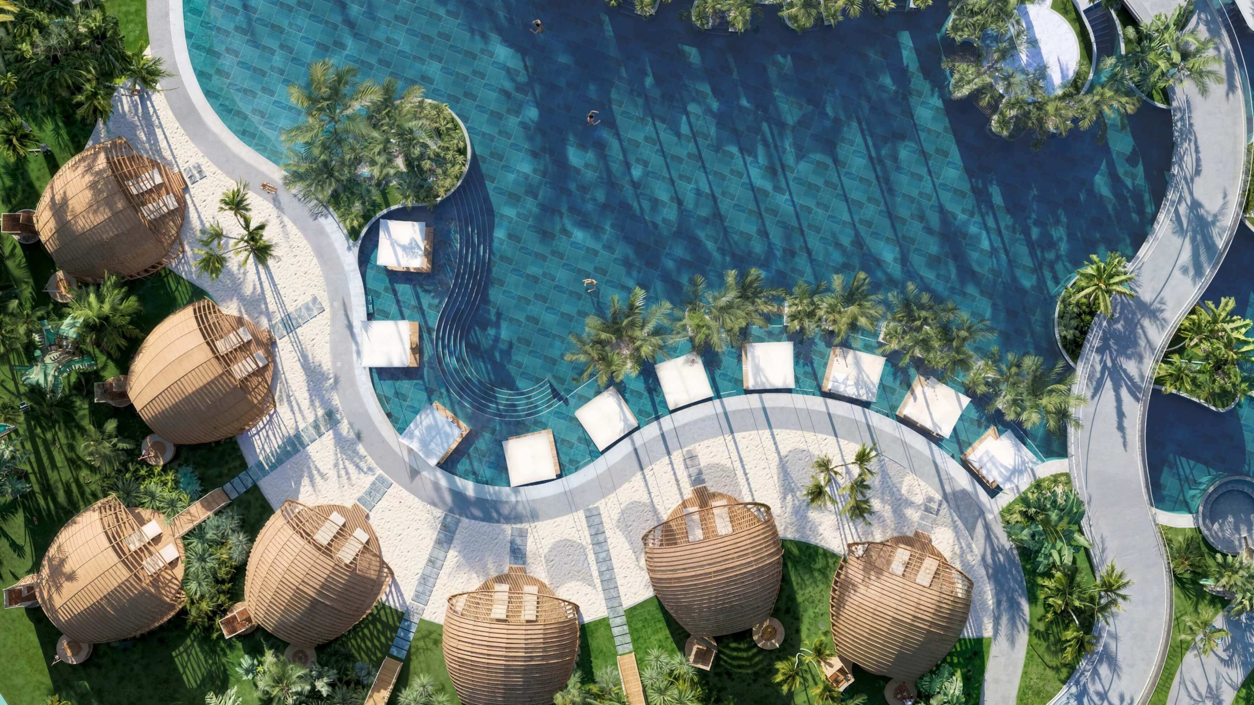 The pool area serves as a central zone supporting relaxation and social interaction. Integrated with this space, the sunbathing areas are designed with natural materials and provide a functional and visually appealing outdoor solution.