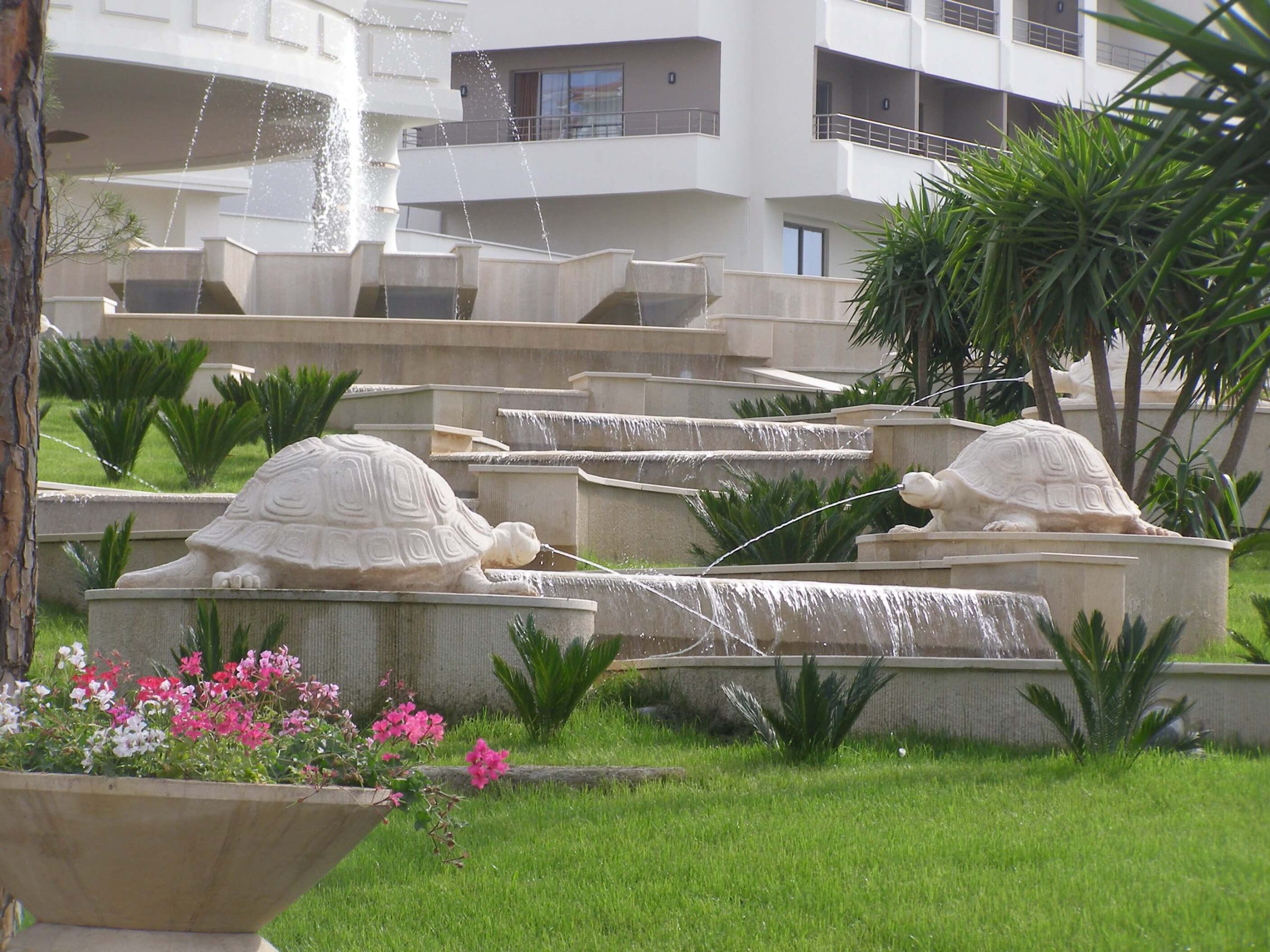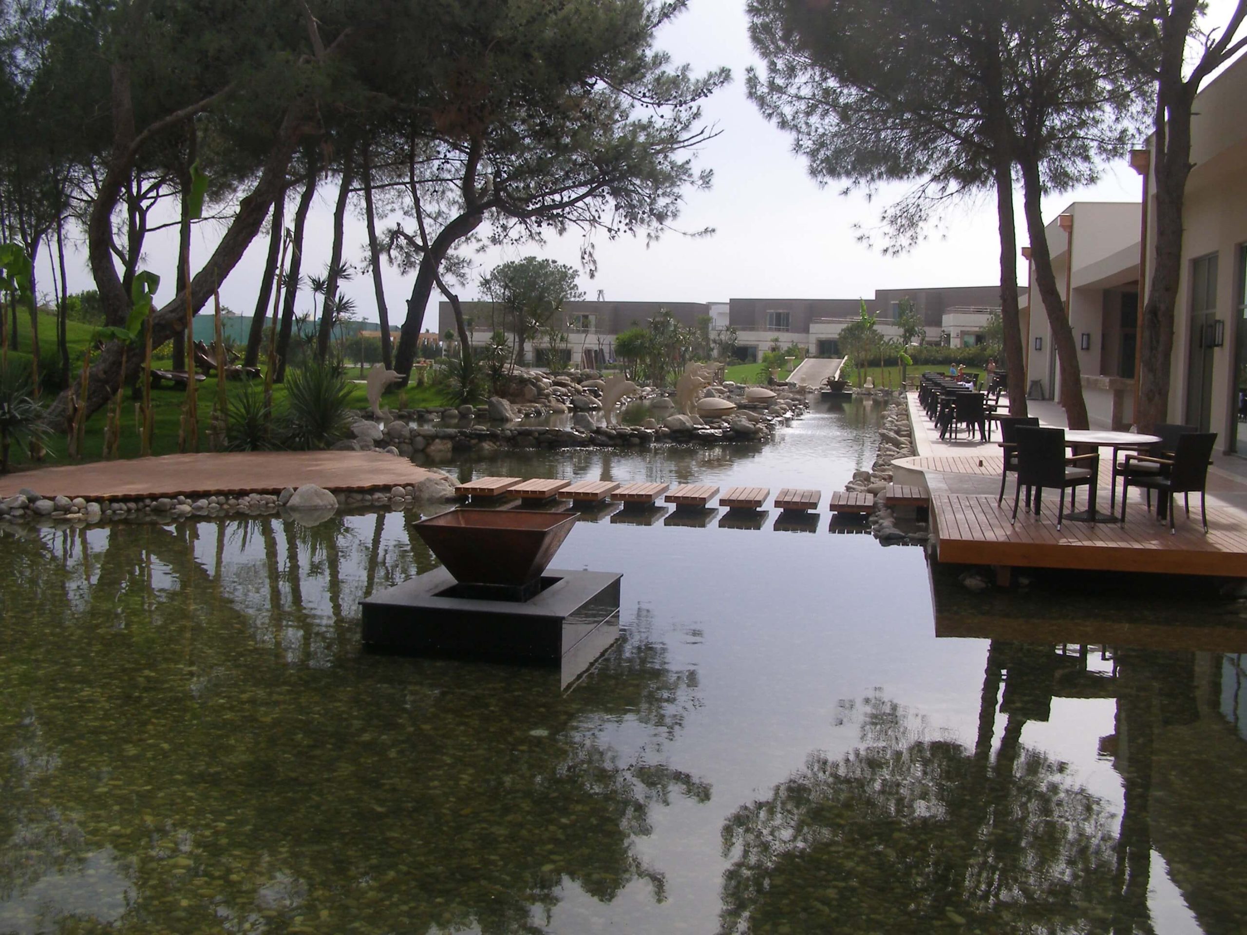The ELA Quality Resort Hotel project, developed for the Özak Group, is one of our comprehensive landscape designs where every area has been meticulously planned. Adopting a modern exotic concept, the design enhances spatial richness through the use of aesthetic plastic objects, fish motifs, large planters, and decorative vases.