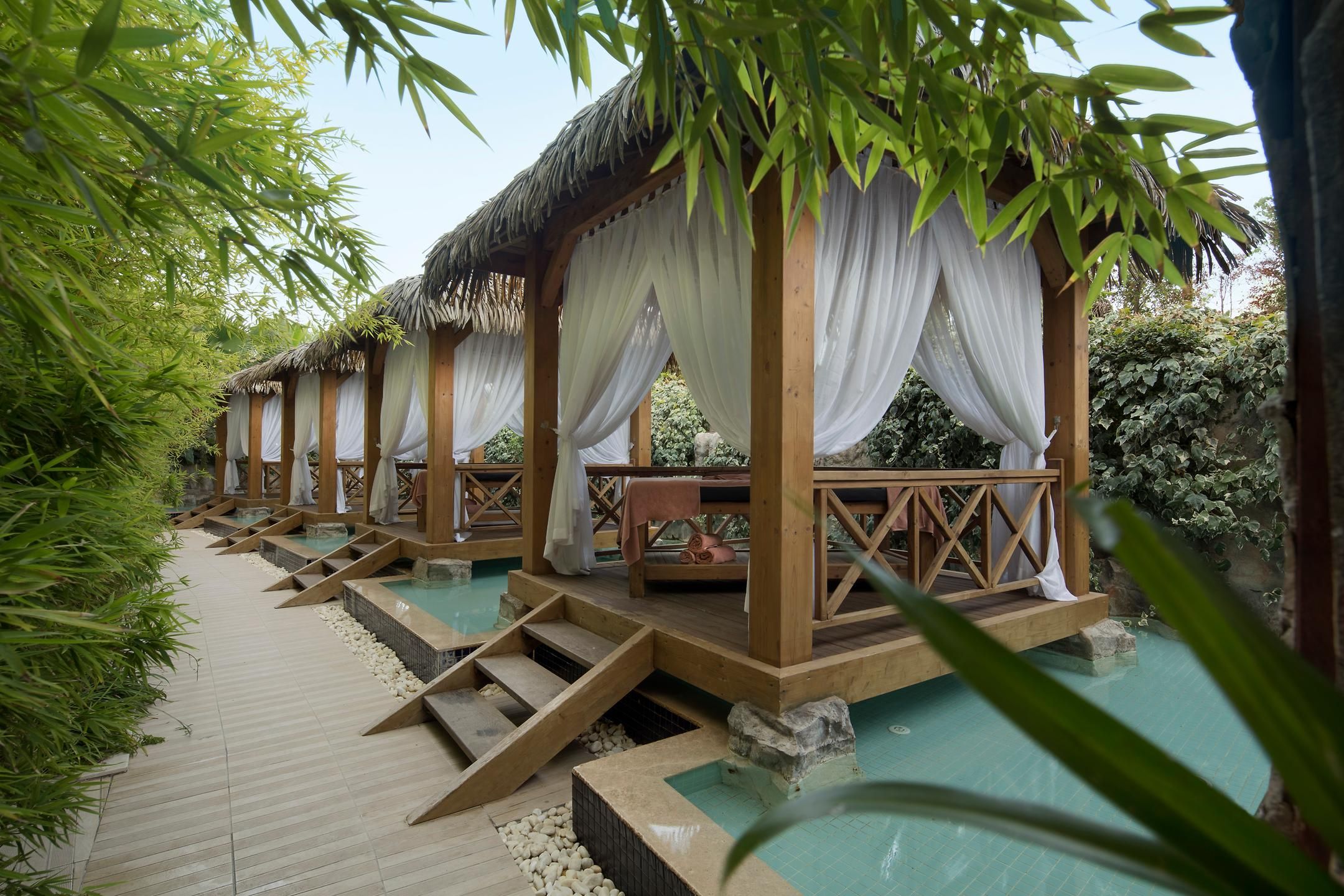 The swimming pool was designed as a functional and cohesive unit—visually integrating the heated outdoor pool with the main pool through connecting bridges. In the SPA zone, open-air massage cabanas, water features, and specific planting compositions provided a peaceful and nature-integrated experience.